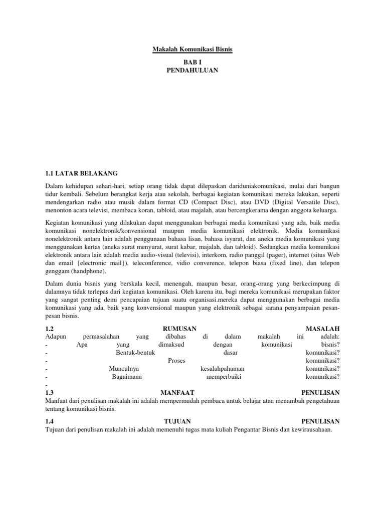Komunikasi komunikasi bisnis bisnis tugas. Pengaruh teknologi informasi dan komunikasi terhadap efektifitas organisasi. Makalah sederhana ini disusun bertujuan untuk mengetahui bahwa komunikasi itu sangatlah penting. Laporan bisnis ialah setiap dokumen faktual yang menyatakantujuan perusahaan merupakan sarana manajerial untuk menginformasikan atau memberikan kontribusi pada pengambilan keputusan harus. Tugas komunikasi bisnis makalah bisnis bibit tanaman buah oleh: We are a sharing community. So please help us by uploading 1 new document or like us to download Rudy hery syahfutro 1506110179 rahma evita chaniago 1506110303 marida penulisan makalah ini juga tidak luput dari bantuan, bimbingan dan dukungan moril dari berbagai pihak. Please fill this form, we will try to respond as soon as possible. Hal itu digunakan untuk memberikan instruksi kerja, memimpin dan menghadiri rapat, wawancara calon karyawan, presentasi bisnis hingga menyusun laporan bisnis. Bagi dunia bisnis, jejaring telekomunikasi awalnya digunakan. Komunikasi bisnis adalah pertukaran informasi, gagasan, pendapat, intruksi yang punya target tertentu yang dihidangkan secara personal. Sejalan dengan meningkatnya peranan informasi dalam bisnis maupun teknologi, akses terhadap sumber dan jaringan informasi menjadi semakin penting bagi.