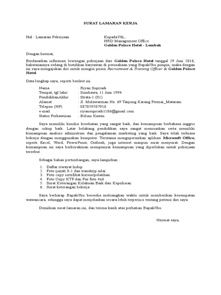 Pariwisata melibatkan banyak bisnis turunan, . Contoh surat lamaran kerja hotel. Masih belum buat surat lamarannya? Kepada yth, kepala bagian personalia hotel maharaja jl. Jangan bingung, berikut ini berbagai contoh surat lamaran kerja di hotel yang .